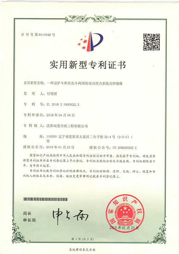 沈陽雙壹機械主要從事挖掘機伸縮臂、加長臂、氣彈簧生產(chǎn)業(yè)務、挖掘機租賃業(yè)務,生產(chǎn)研發(fā)18-55米伸縮臂,200米卷揚挖掘器;公司生產(chǎn)的三節(jié)伸縮臂為雙向用力,可配帶挖掘斗與貝殼斗,超大斗容2.6立方;研發(fā)的氣彈簧可節(jié)油50%,加大斗容80%,提高大臂舉升力!挖掘機伸縮臂適用于地鐵、地下人防、沉井、河道清淤、高層樓基礎、管廊工程等深遠坑作業(yè),產(chǎn)品選材優(yōu)良,設備工藝先進,質量穩(wěn)定可靠,雙壹機械以質量求生存、以信譽占市場的經(jīng)營原則為全國用戶提供優(yōu)質產(chǎn)品。